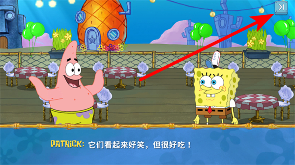 1、點(diǎn)擊界面右上角的箭頭按鈕,推進(jìn)劇情對話,解鎖餐廳經(jīng)營的后續(xù)任務(wù)。