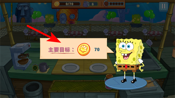 3、查看主要目標(biāo)如收集70枚貝殼幣,明確當(dāng)前經(jīng)營階段的核心任務(wù),規(guī)劃餐品制作節(jié)奏。