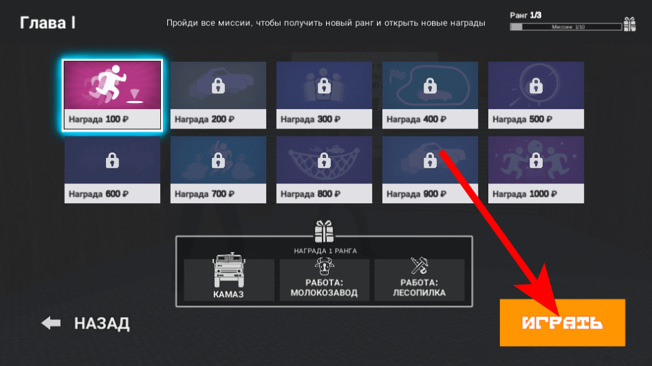 2、在任務(wù)界面選擇對應(yīng)關(guān)卡如ГлаваI下的任務(wù),點擊橙“ИГРАТЬ按鈕,開始當前任務(wù)。