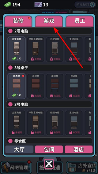 根據(jù)經(jīng)營(yíng)收益購(gòu)置新的電腦、桌椅等設(shè)施,還能對(duì)現(xiàn)有設(shè)施進(jìn)行性能升級(jí),提升上網(wǎng)體驗(yàn)以吸引更多顧客消費(fèi)。
