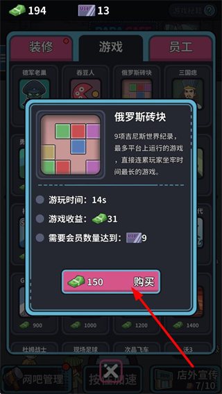 4、確認(rèn)當(dāng)前擁有的資金滿足購(gòu)買需求,點(diǎn)擊詳情窗口中的購(gòu)買按鈕,消耗對(duì)應(yīng)貨幣即可獲取該游戲。