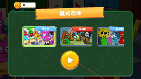 1、進入游戲后先在模式選擇界面挑選對應(yīng)章節(jié),點擊下方開始按鈕即可進入對應(yīng)關(guān)卡,不同章節(jié)對應(yīng)不同的整蠱場景與挑戰(zhàn)目標。