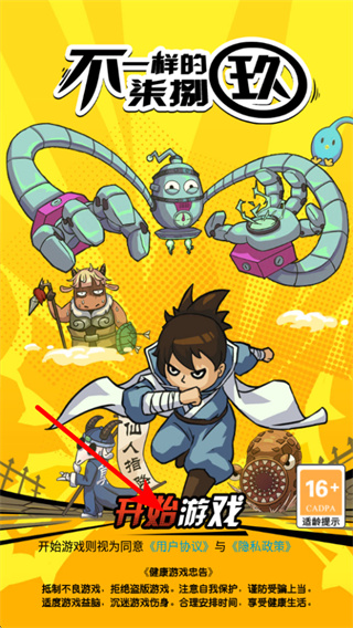 1、在游戲啟動(dòng)界面點(diǎn)擊開始游戲,進(jìn)入玩法流程,同時(shí)注意閱讀界面的用戶協(xié)議與健康游戲提示,確保了解游戲的基礎(chǔ)規(guī)則。