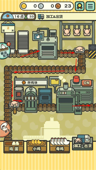 3、小雞成長(zhǎng)后,可通過加工&出貨設(shè)施將其加工為雞肉產(chǎn)品,完成生產(chǎn)流程并獲取收益。