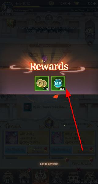 2、戰(zhàn)斗結(jié)束后會彈出獎勵界面,可獲得金幣和經(jīng)驗等道具,點擊界面即可繼續(xù)游戲,推進后續(xù)的關(guān)卡或任務(wù)流程。