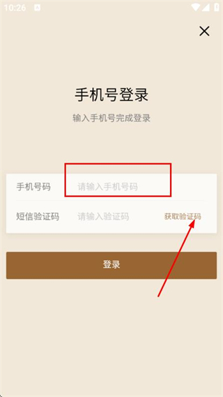 2、在手機(jī)號登錄頁面填寫手機(jī)號后,點(diǎn)擊獲取驗(yàn)證碼。