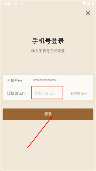 3、在驗(yàn)證碼輸入框中填寫收到的驗(yàn)證碼,點(diǎn)擊登錄完成賬號的登錄操作。
