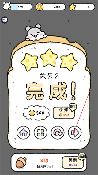 4、獲得關(guān)卡2完成提示,可領(lǐng)取獎(jiǎng)勵(lì),點(diǎn)擊對(duì)應(yīng)按鈕進(jìn)入后續(xù)環(huán)節(jié)。