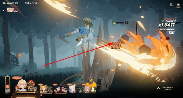 2、進入戰(zhàn)斗場景,觀察敵方狀態(tài),控制角色釋放攻擊技能,技能命中敵方會顯示傷害數(shù)值,累計傷害達成目標(biāo)可推進戰(zhàn)斗。