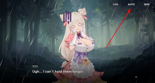 4、劇情界面會有角色互動內(nèi)容,右上角有自動或跳過功能,選對應(yīng)的選項就能調(diào)整劇情推進的節(jié)奏。