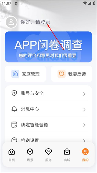 2、在個人頁面,點擊你好,請登錄區(qū)域,進入登錄選擇頁面。