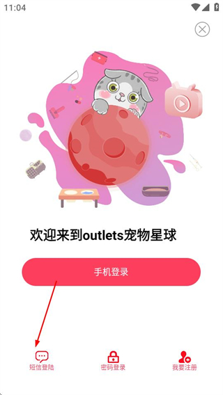 2、在登錄引導頁,點擊短信登陸選項,進入短信登錄頁面。