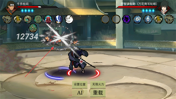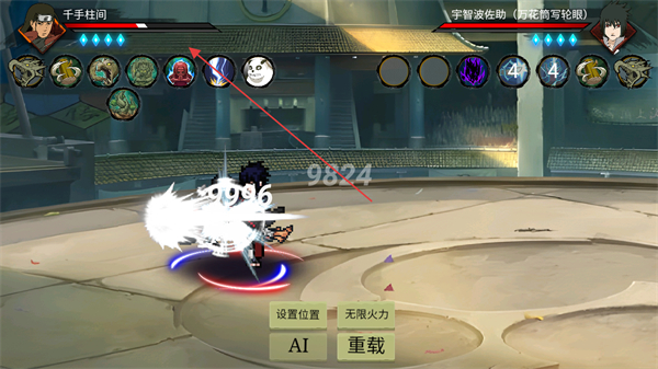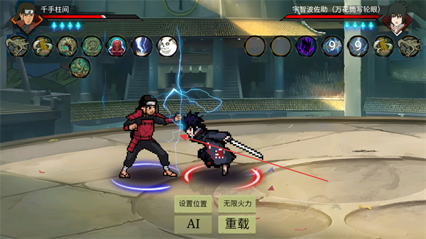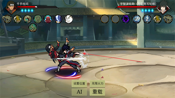 1、選擇角色千手柱間對(duì)戰(zhàn)宇智波佐助,釋放技能觸發(fā)戰(zhàn)斗特效。