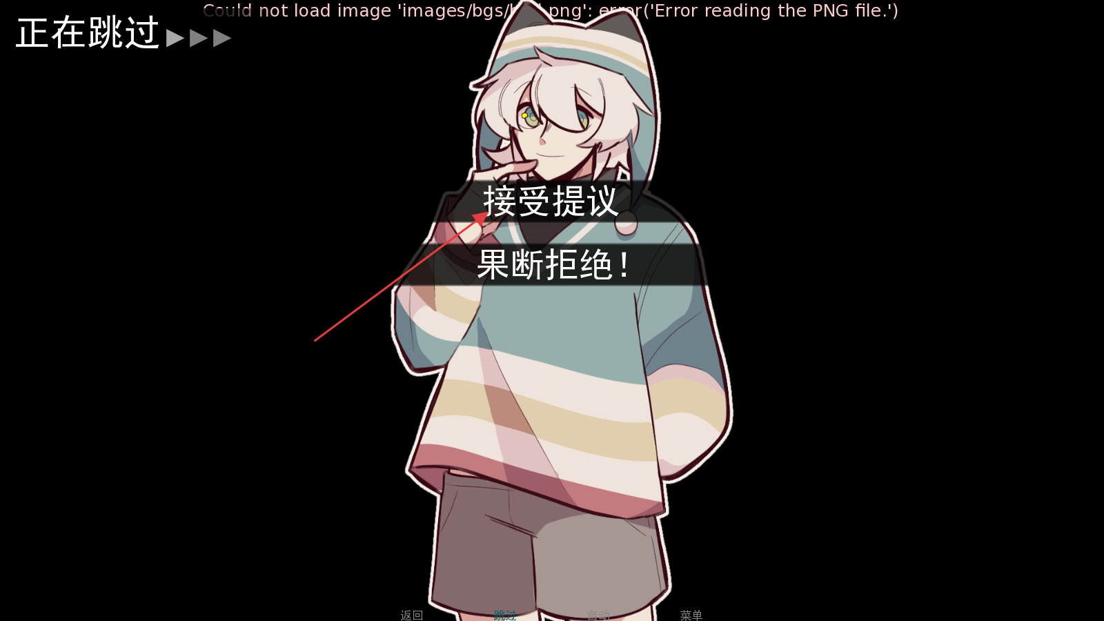 2.對(duì)話跳過后來到選擇界面,可選擇接受提議參與互動(dòng),或選擇果斷拒絕,按需求選對(duì)應(yīng)選項(xiàng)推進(jìn)劇情。