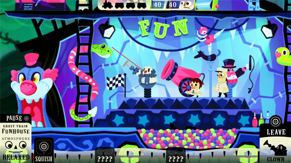 2、進(jìn)入FUNHOUSE場景、與小丑等角色互動(dòng)、參與趣味關(guān)卡任務(wù)、推進(jìn)鬧鬼的房子桃子漢化版的游玩流程。