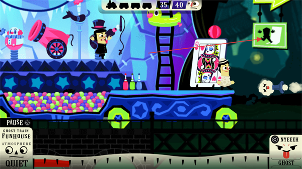 1、進(jìn)入GHOSTTRAIN場景、操控幽靈火車行進(jìn)、切換氛圍狀態(tài)、應(yīng)對場景元素、推進(jìn)鬧鬼的房子桃子漢化版的關(guān)卡進(jìn)程。
