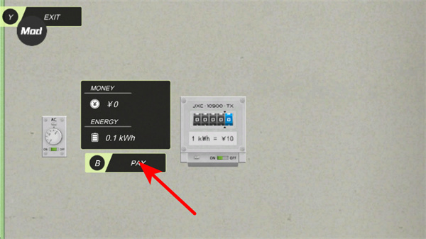 2、進入繳費界面后,點擊PAY按鈕完成費用相關(guān)的操作,查看界面中的金錢與能源數(shù)值,了解消耗與獲取規(guī)則,為后續(xù)資源管理做準備。