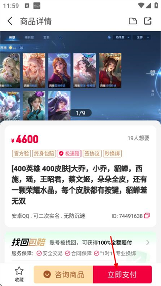3、在商品詳情頁(yè)面確認(rèn)信息后,點(diǎn)擊底部的立即支付按鈕,完成該商品的購(gòu)買操作。