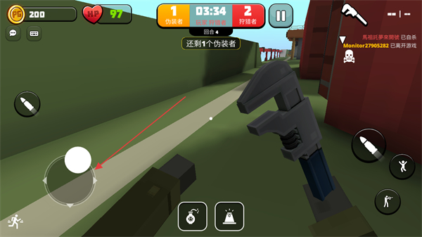 3、用移動按鈕操控角色移動,在場景中尋找可隱藏的區(qū)域。