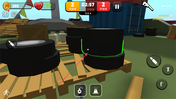 4、找到如油桶旁的隱蔽處,進(jìn)入隱藏狀態(tài),躲避獵人的搜尋。