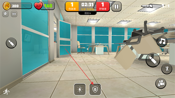 1、獵人身份時(shí),在房間內(nèi)移動(dòng),搜尋偽裝者,目標(biāo)鎖定桌椅區(qū)域。