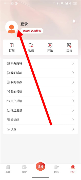 1、打開彩練新聞,點(diǎn)擊底部的我的,進(jìn)入登錄。