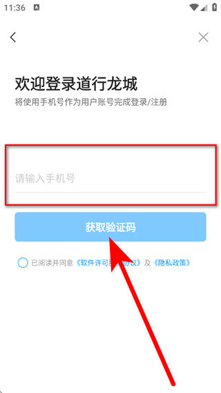 3、在登錄頁(yè)面,輸入手機(jī)號(hào),點(diǎn)擊獲取驗(yàn)證碼。