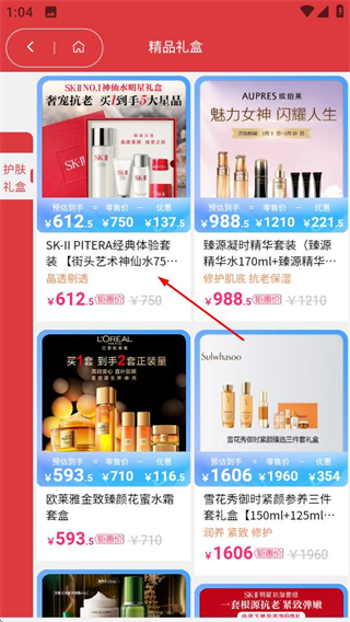 1、在松鼠美淘的首頁,點擊精品禮盒選項,進(jìn)入精品禮盒商品列表頁。