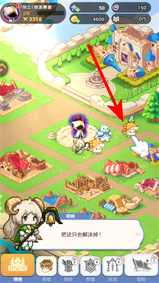 2、在城堡的場景中,我們需要點(diǎn)擊目標(biāo)怪物如圖中的蘑菇怪觸發(fā)挑戰(zhàn)流程,這是開啟戰(zhàn)斗玩法的核心操作,選定怪物后即可進(jìn)入挑戰(zhàn)環(huán)節(jié),推進(jìn)進(jìn)度的同時積累資源。