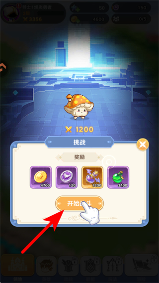 3、在彈出的挑戰(zhàn)獎勵界面中,點(diǎn)擊開始戰(zhàn)斗按鈕進(jìn)入戰(zhàn)斗環(huán)節(jié),這是獲取挑戰(zhàn)獎勵的前提操作,進(jìn)入戰(zhàn)斗后可通過擊敗怪物獲得金幣、道具等資源,助力像素城的發(fā)展。