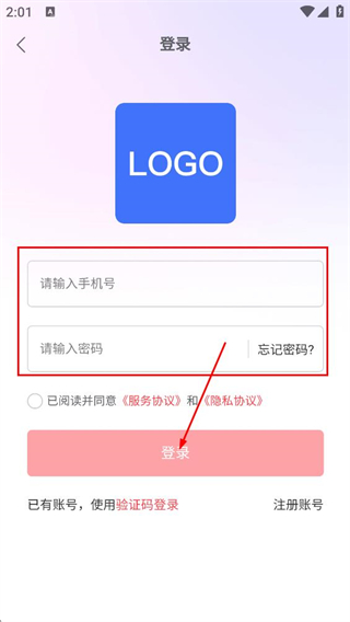 4、在手機號密碼登錄界面,填寫手機號與密碼,點擊登錄,完成賬號登錄。