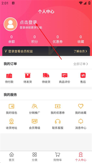 2、在個人中心頁面,點擊點擊登錄的區(qū)域,進入登錄選擇頁面。