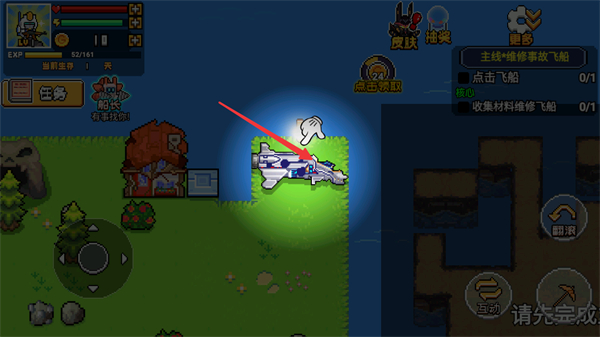3、操控角色移動(dòng)到飛船位置、點(diǎn)擊飛船、推進(jìn)維修飛船的主線任務(wù)、繼續(xù)荒島求生的游戲流程。