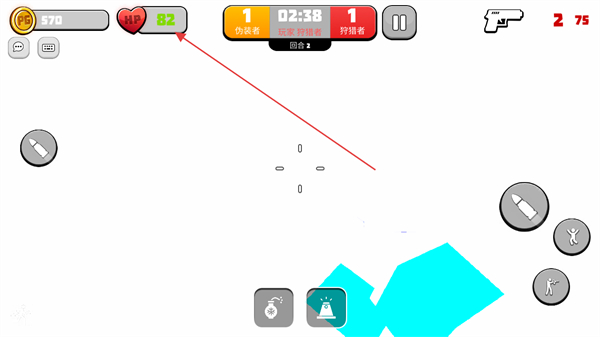 3、攻擊后自身血量下降,繼續(xù)在場(chǎng)景中尋找剩余偽裝者。