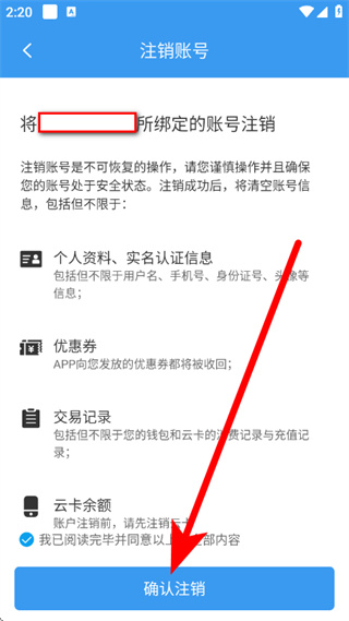 4、在注銷賬號頁面,勾選協(xié)議后,點(diǎn)擊確認(rèn)注銷。