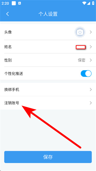 3、在個人設(shè)置頁面,點(diǎn)擊注銷賬號,進(jìn)入注銷賬號界面。