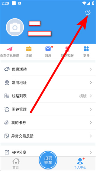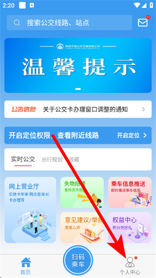 1、打開月城公交乘車碼,點(diǎn)擊底部的個人中心,進(jìn)入個人中心頁面。