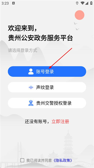 2、在登錄方式選擇頁(yè)面,點(diǎn)擊賬號(hào)登錄的選項(xiàng),進(jìn)入賬號(hào)登錄頁(yè)面。