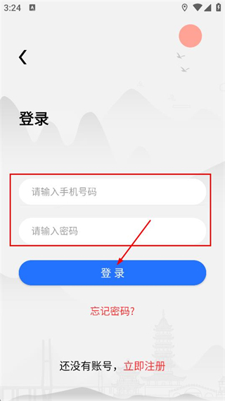 3、在賬號(hào)登錄頁(yè)面,填寫手機(jī)號(hào)碼與密碼,點(diǎn)擊登錄,完成賬號(hào)登錄。