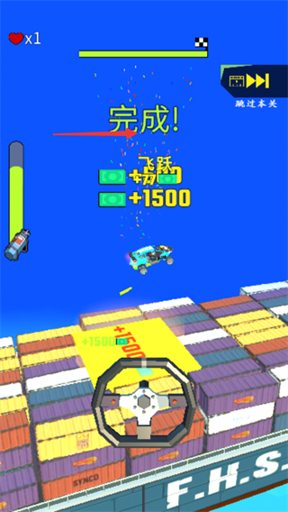3、關卡結束顯示完成、獲得飛躍等獎勵+1500、結算收益后推進游戲流程。