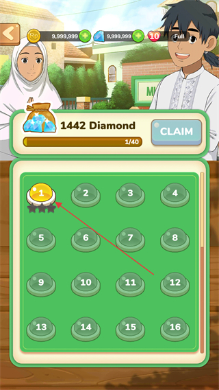 1、在關(guān)卡選擇界面,點擊已解鎖的關(guān)卡進入游戲,同時可點擊CLAIM按鈕領(lǐng)取獎勵,為后續(xù)游戲進程提供資源支持。