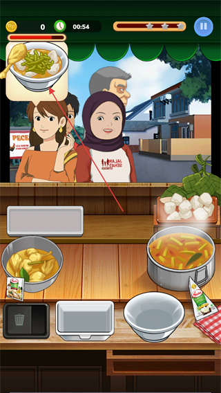 2、進入關(guān)卡后,依據(jù)顧客需求的菜品樣式,選取對應(yīng)的食材,按要求制作對應(yīng)餐食以完成顧客的訂單需求。