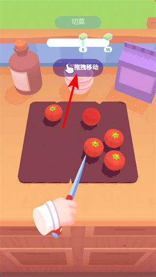 3、在切菜環(huán)節(jié),通過拖拽操作移動刀具,將食材切成對應形狀,注意操作的流暢度,確保食材均勻切割,為后續(xù)烹飪或裝飾環(huán)節(jié)做好準備。
