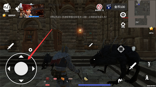 1、通過虛擬搖桿操控角色移動、與場景內(nèi)怪物對戰(zhàn)、推進凡爾賽法環(huán)的關卡進程。