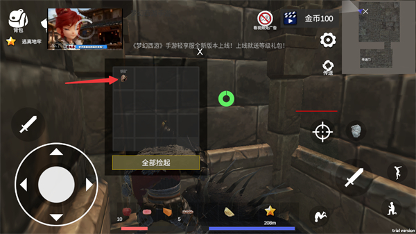 3、打開物品格子界面、點擊全部撿起獲取道具、積累凡爾賽法環(huán)的資源道具。