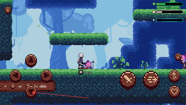 1、擊敗關(guān)卡中的少女后,點(diǎn)擊方向下鍵可以將她背在身上。