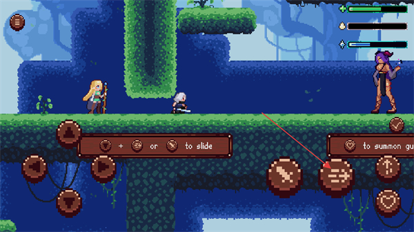 4、點(diǎn)擊方向下鍵和右側(cè)沖刺按鈕,可以進(jìn)行滑鏟通過狹窄的道路。