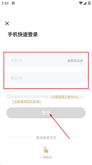 3、在快速登錄頁面,填寫手機(jī)號和對應(yīng)驗證碼,點擊登錄,完成賬號登錄。
