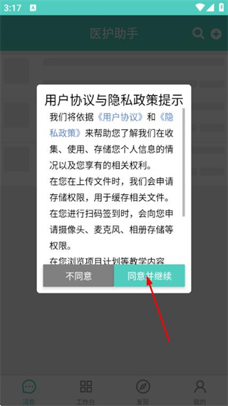 1、在使用協(xié)議隱私政策彈窗中點擊同意并繼續(xù)按鈕,進入登錄頁面。