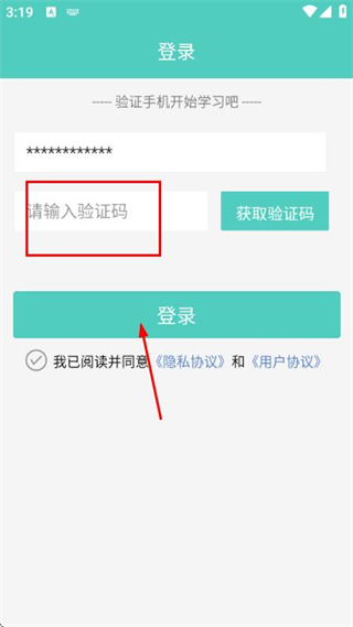 3、在驗證碼輸入框中填寫收到的驗證碼,點擊登錄完成賬號的登錄操作。